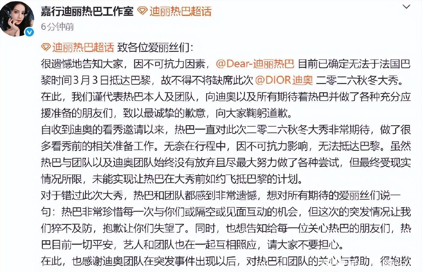 迪丽热巴这回真是遭了大罪,谁能想到堂堂顶流,竟成了开年最让人揪心的女明星?本来中东那边局势就乱得让人心慌,她偏偏被困在了迪拜。这消息一出来,粉丝的心都悬到了嗓子眼,结果不到三天,她的具体位置居然又被曝光了!这下好了,原本就危险重重,现在更是雪上加霜,气得粉丝们直接炸锅,指着工作室的鼻子骂简直是垃圾。       你说怪不怪,艺人自个儿还没发声呢,行踪倒是被外人摸得门儿清。有爆料说她落地马来西亚了,可到底回没回国谁心里也没底。更让人窝火的是那个转机安排,简直离谱他妈给离谱开门!要是时间稍微早点,或者直接飞巴黎,哪能摊上这种事儿?特殊时期把人家大明星一个人扔在迪拜机场中转,化妆师、摄影师还有助理团队倒好,全直飞巴黎享福去了。这操作,别说粉丝了,就连路人都看不下去,说是仇人听了都得释怀,真的一点都不夸张。       回想这些年,这家工作室的操作真是让人越想越恶心。早几年热巴过生日,公司送个蛋糕居然是块“砖头”造型,美其名曰“努力搬砖”,甚至还有人偷吃给她的蛋糕连声招呼都不打,连装饰品皇冠都给顺走了。参加《花儿与少年》的时候,别的女星都有团队精心搭配服装,只有她睡眼惺忪地自己翻箱倒柜找衣服,身边连个助理的影子都见不着。如今出了这么大的事,工作室就发张冷冰冰的说明敷衍了事,连句像样的道歉都没有,品牌方都在帮忙关注动态,他们却在装死。       网友们的猜测也不是没道理,除了工作室内部的人,谁能这么清楚她的行踪?这一桩桩一件件复盘下来,真心疼迪丽热巴。明明业务能力没得挑,偏偏摊上这么个不给力的团队,硬生生把一手好牌打得稀烂。现在不止粉丝急得团团转,连普通观众都替她感到憋屈。这哪里是明星,简直就是被团队拖后腿的“惨妹”代表,真不知道还要让爱她的人担惊受怕到什么时候。